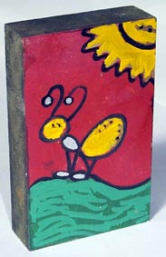 | Trabajos coordinados por Hilda Catz, y realizados por el grupo del Taller . Presentados en la maquina expendedora de arte. Via postal,Arte BA 2003. |